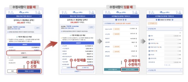 * 금액 수정이 필요한 경우 '신고화면 이동'을 선택해 직접 변경 가능