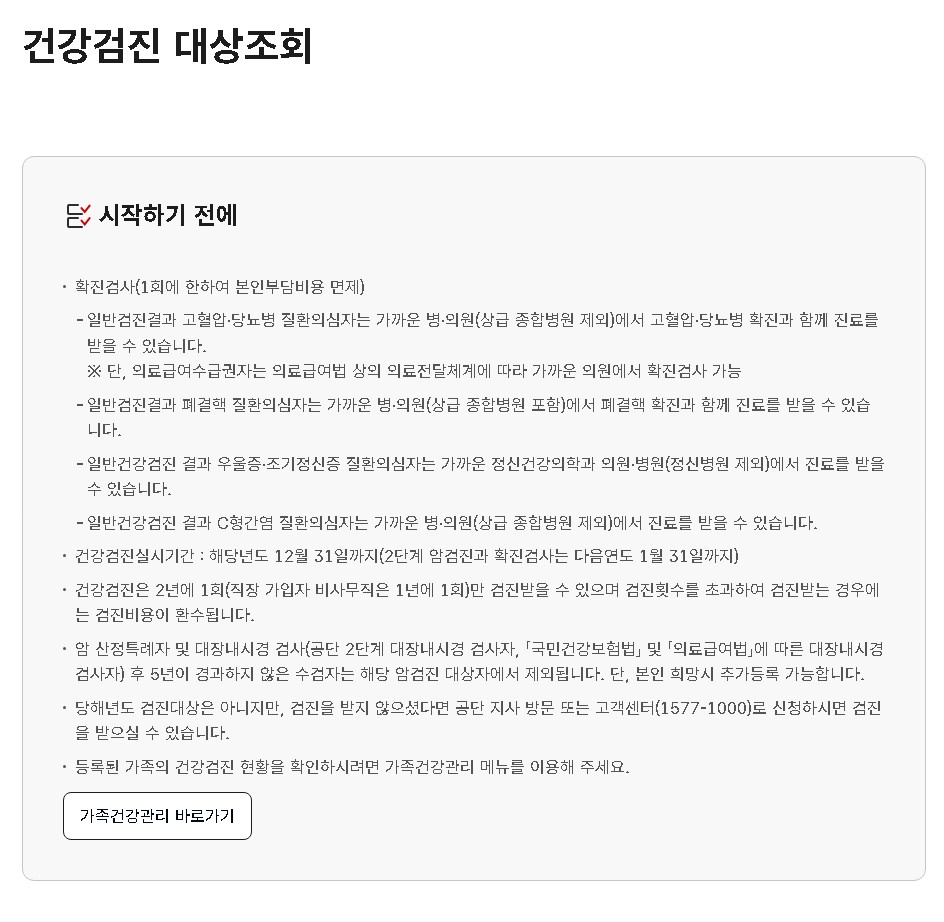 - 본인인증 후 간편하게 건강검진 대상자 조회 가능