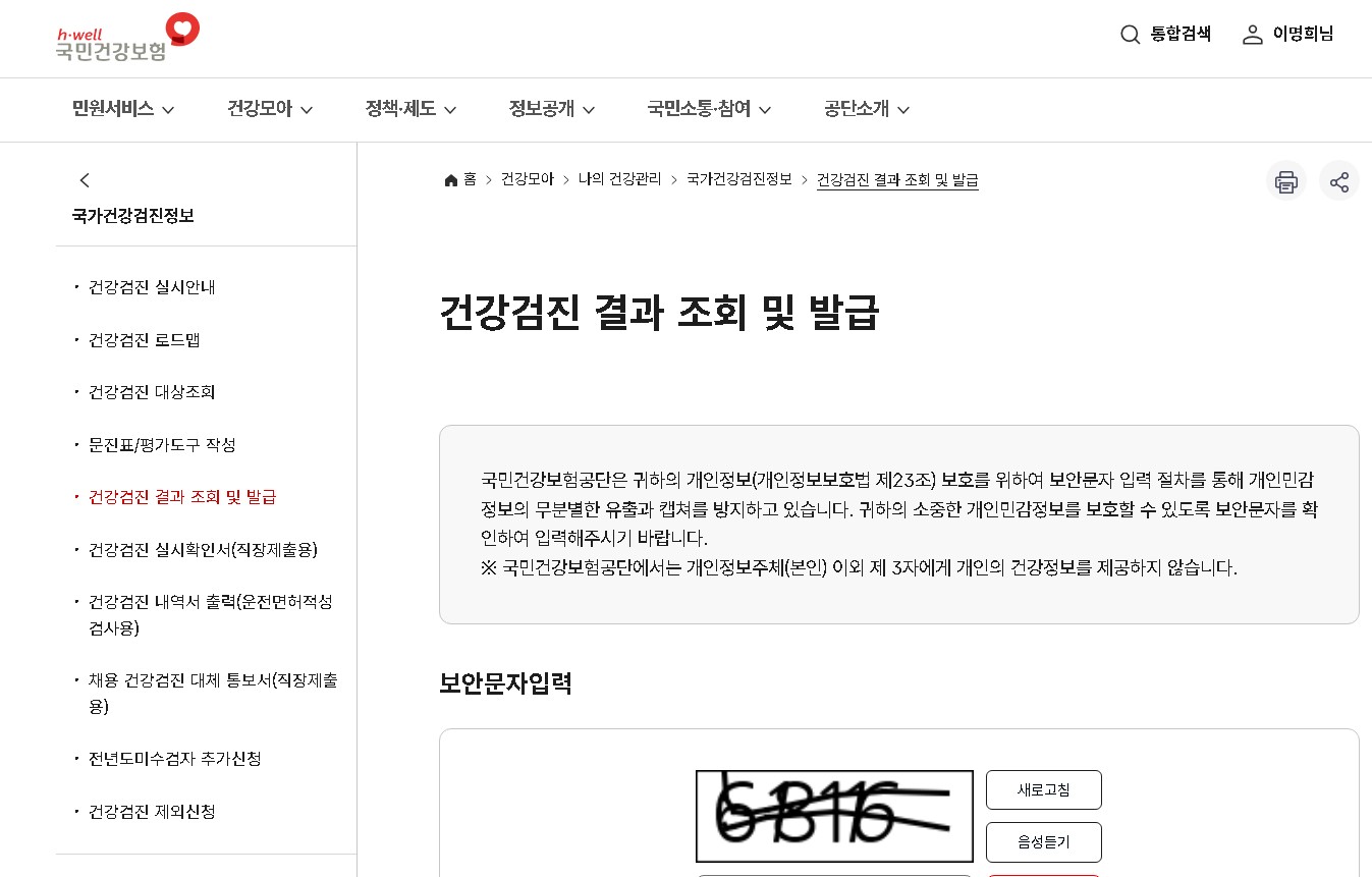 ① 국민건강보험공단 홈페이지 건강검진 대상자 조회