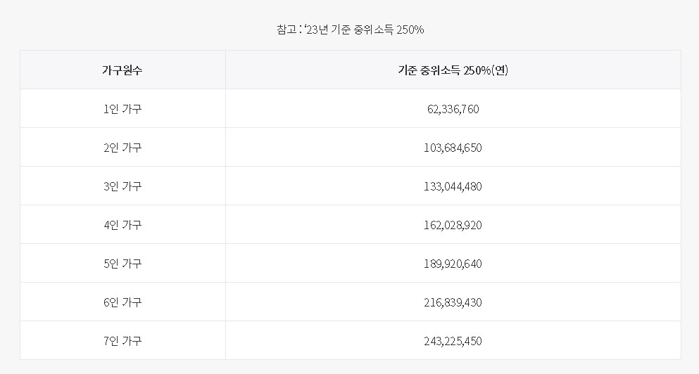 | 개인 소득 | 총 급여 7,500만 원 이하 or 종합소득 6,300만 원 이하 |