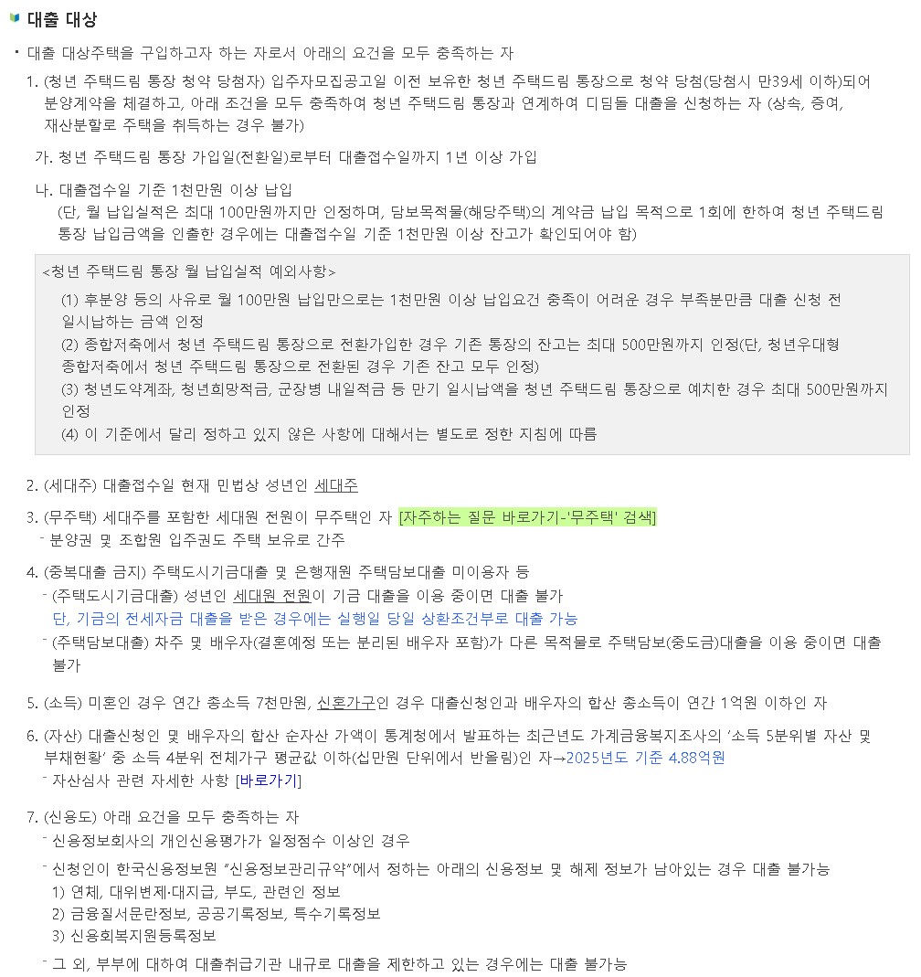 | 청약통장 | 청년주택드림 청약통장 가입 후 1년 이상, 1천만 원 이상 납입 및 청약 당첨 |