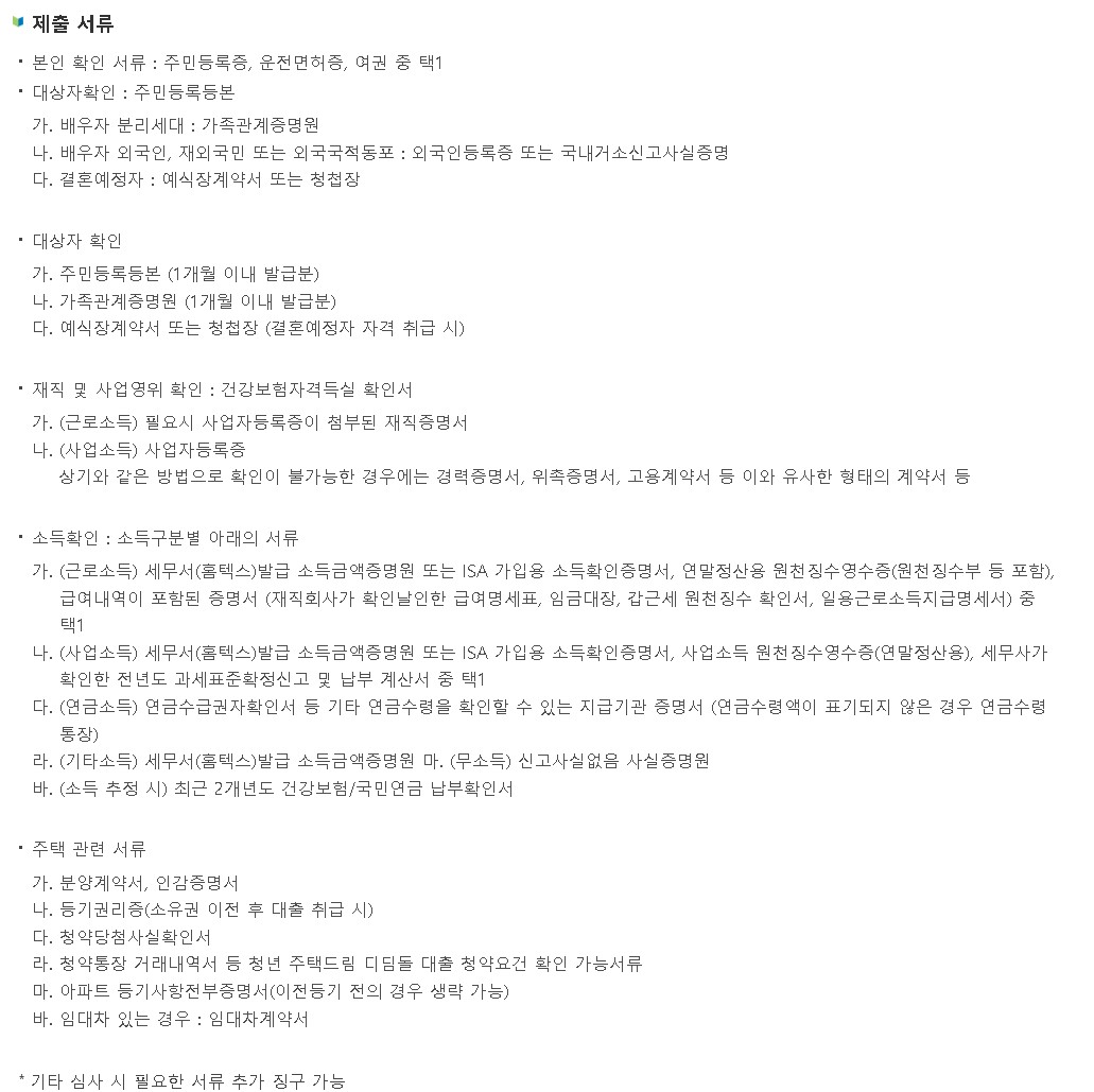 - 4단계: 필요한 서류 준비 및 제출 (소득 증빙, 자산 증빙, 주민등록등본, 청약 당첨 확인서 등)
