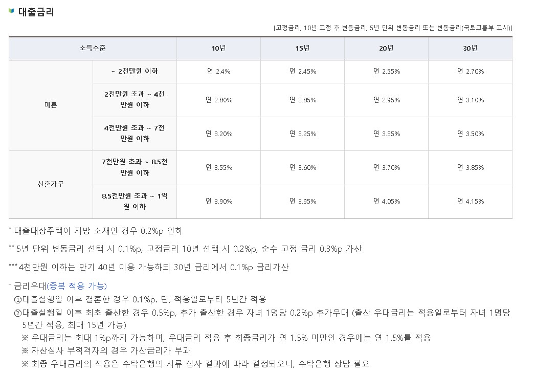 | 우대 금리 | 결혼(0.1%p 인하), 첫 출산(0.5%p 인하), 추가 출산(자녀당 0.2%p 인하) - 최저 1.5%까지 가능 |