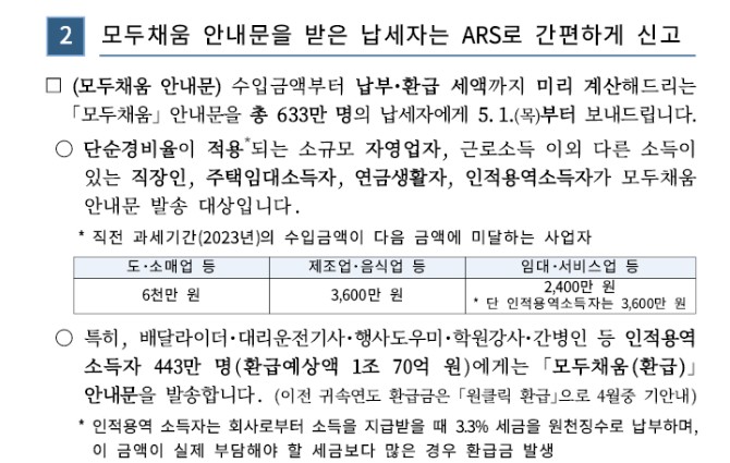 A. 아닙니다. 수익이 발생했다면 안내문과 관계없이 반드시 직접 확인 후 신고해야 합니다.
